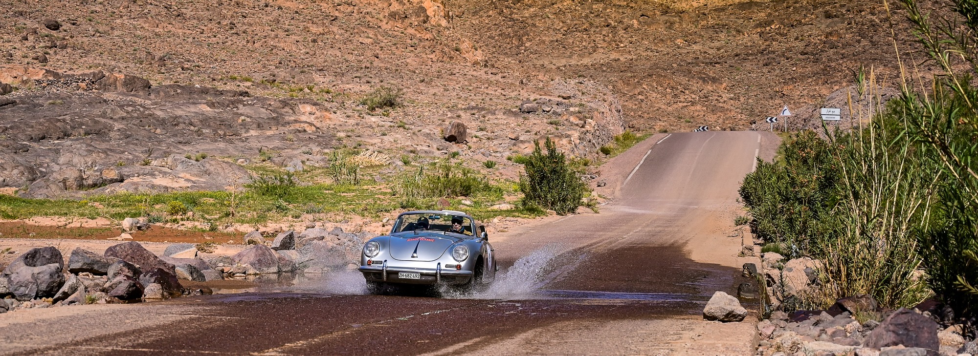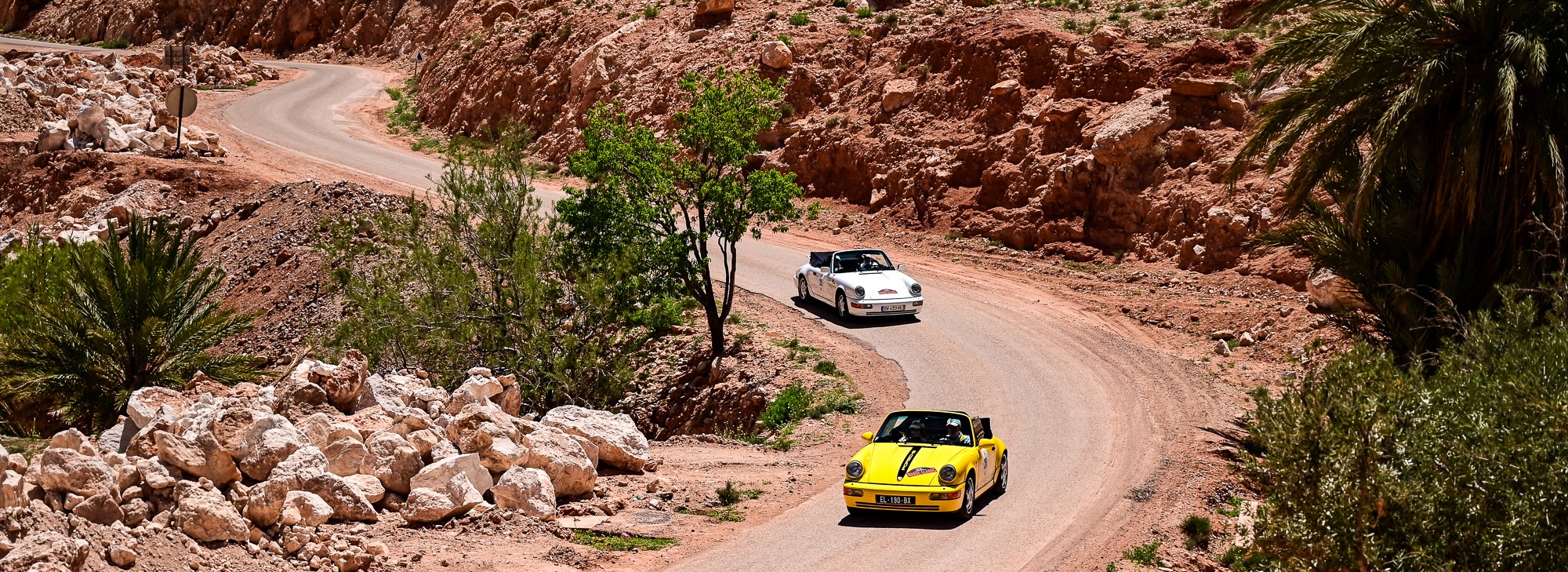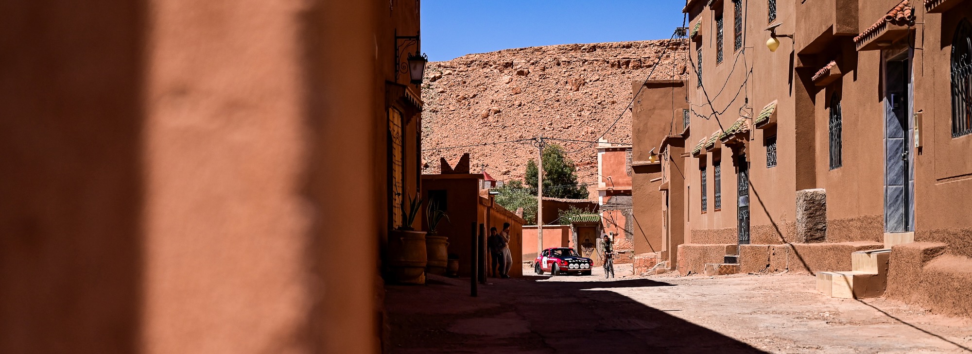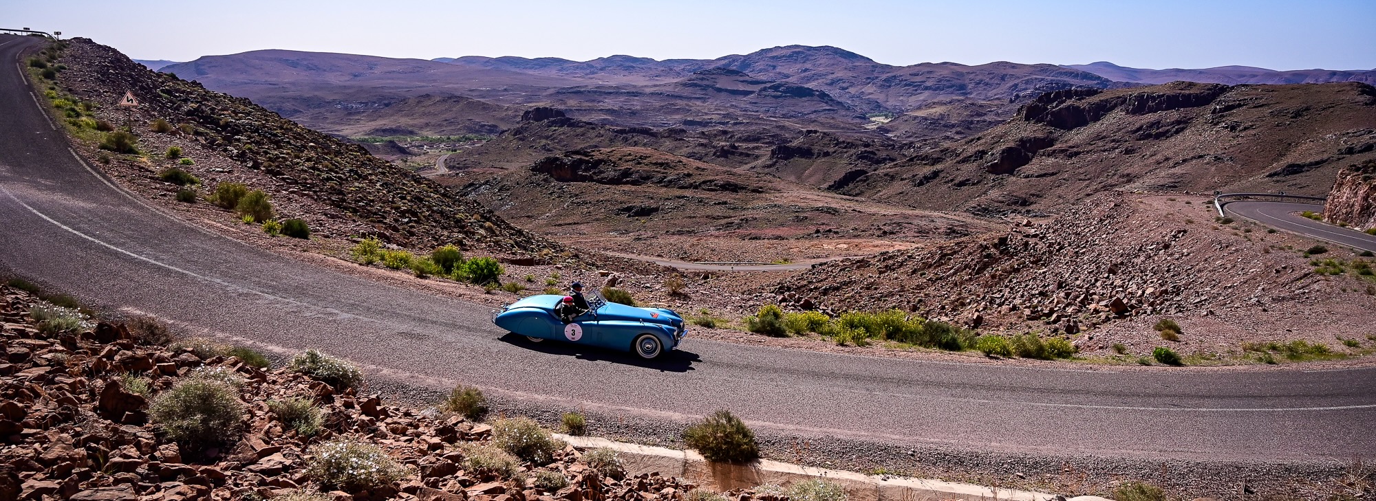 ZR15 et ZR16 – Défis techniques et panoramas majestueux L’après-midi a commencé par la ZR15, sur la route de Télouet, empruntée la veille mais cette fois en sens inverse. Les épingles serrées et les virages techniques ont exigé concentration et régularité, avec la Kasbah du Glaoui et le col du Tizi N’Tichka (2 260 m) en toile de fond. Une petite route au cœur des terres rouges de l’Atlas a ensuite mené à la ZR16, courte mais très technique (3,4 km). Les équipages ont pu profiter de vues exceptionnelles sur le Jebel Toubkal, point culminant du Maroc à 4 167 mètres, dont le sommet enneigé domine majestueusement toute la chaîne de l’Atlas.