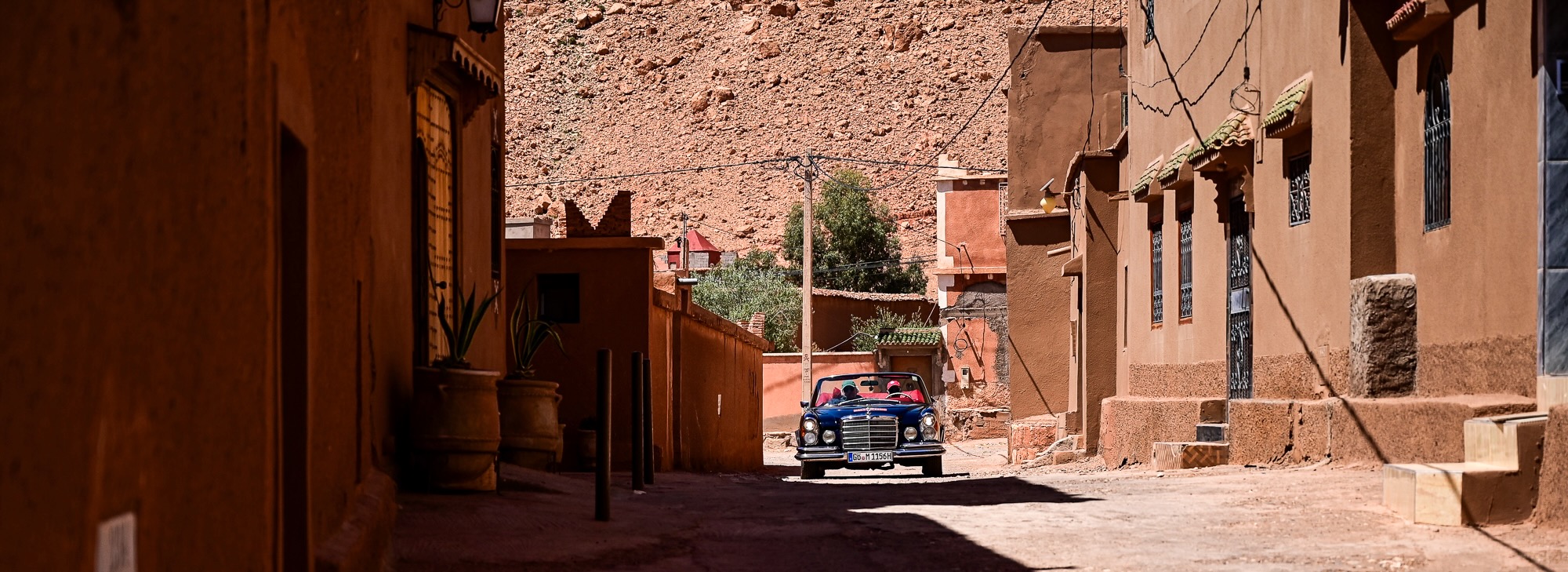 Taznakht et Aït Benhaddou – Entre artisanat et patrimoine Le parcours a ensuite traversé Taznakht, connue pour ses coopératives de tapis berbères. Les équipages ont pu admirer le savoir-faire ancestral des tisserands et s’immerger dans la tradition locale. La matinée s’est poursuivie vers la célèbre kasbah d’Aït Benhaddou, classée au patrimoine mondial de l’UNESCO et décor de nombreux films. Un contrôle de passage a permis aux participants de profiter d’un moment pour admirer ce site exceptionnel, avec ses murs ocres illuminés par le soleil.