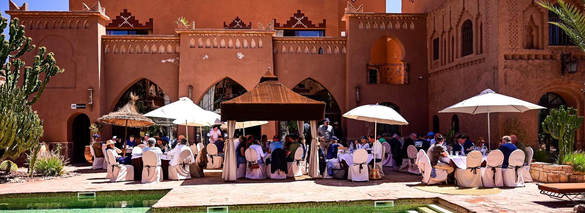 Le déjeuner s’est tenu au Ksar Ighnda, charmant établissement sur les rives de l’Oued Ounila, offrant un cadre parfait pour se détendre avant d’attaquer l’après-midi.